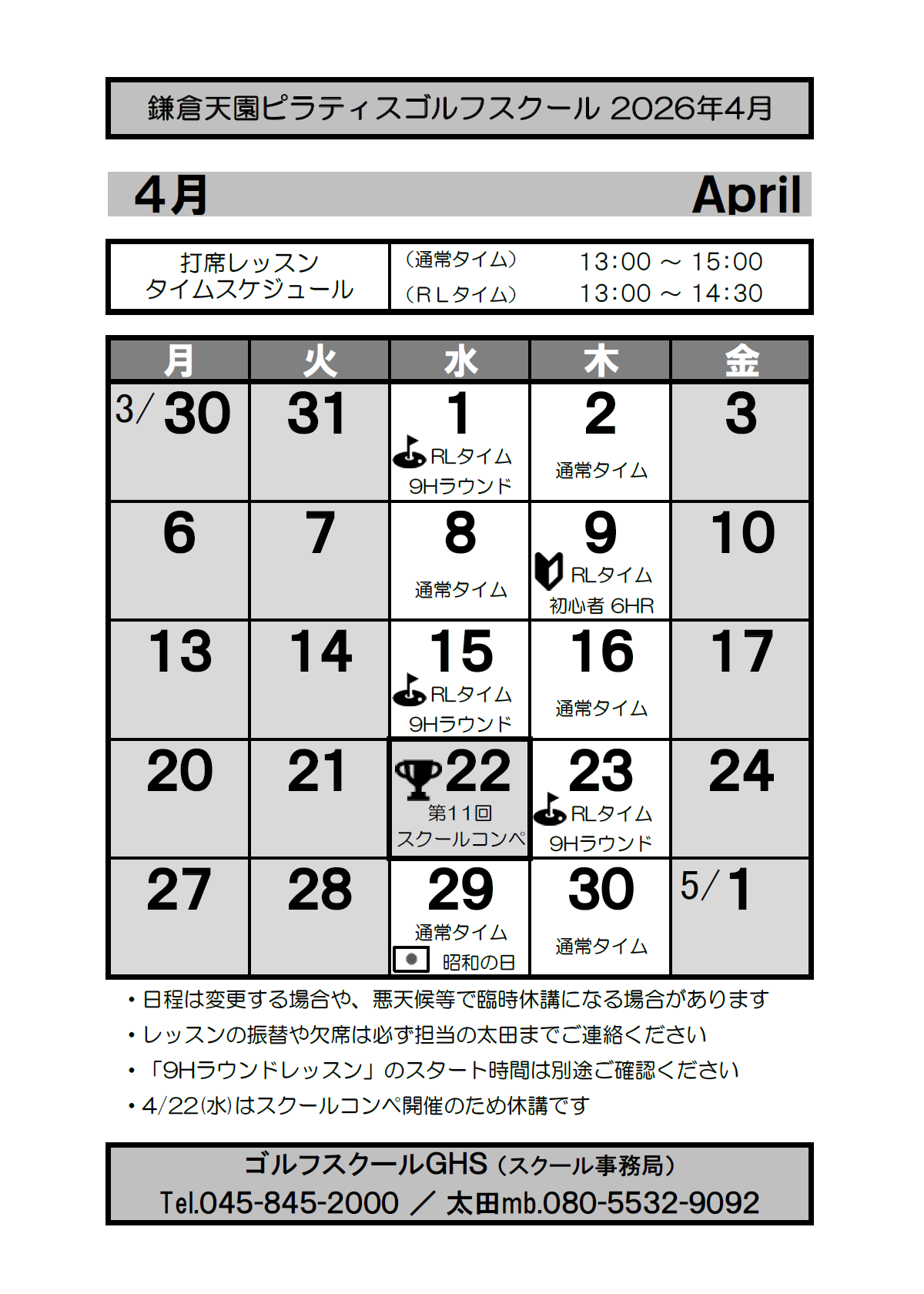 東戸塚スクール「春のコンペ&懇親会」 (3/30) →