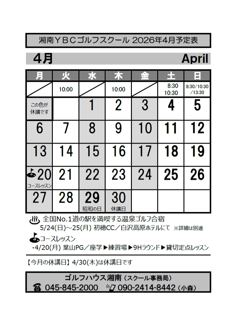 2026.03.08 下記スクールの4月日程をアップしました