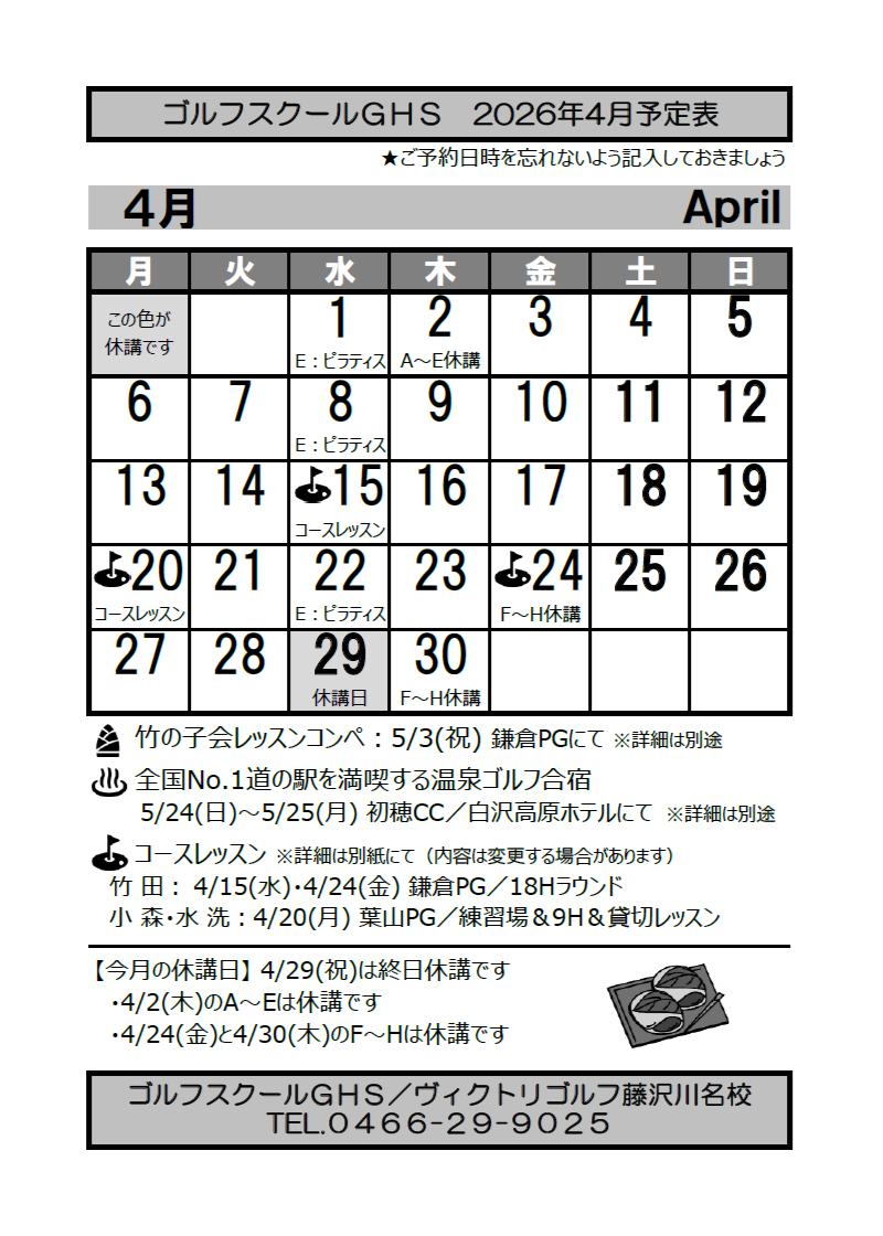 2026年4月のコースレッスンのご案内(PDF)は →