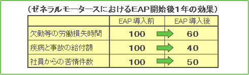 現在では、全米でゼネラルモータースを筆頭に100社以上の大企業が、また数えきれない程の企業がEAPを導入し、確実な成果を上げています。