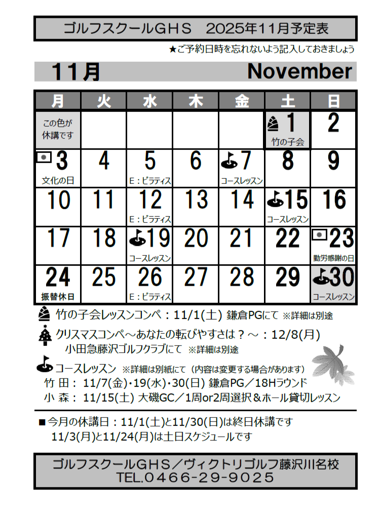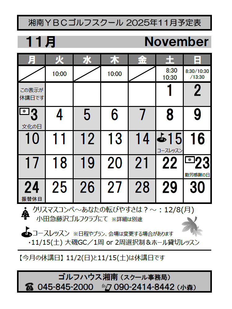 東戸塚スクール「秋のコンペ&懇親会」 (11/3) →